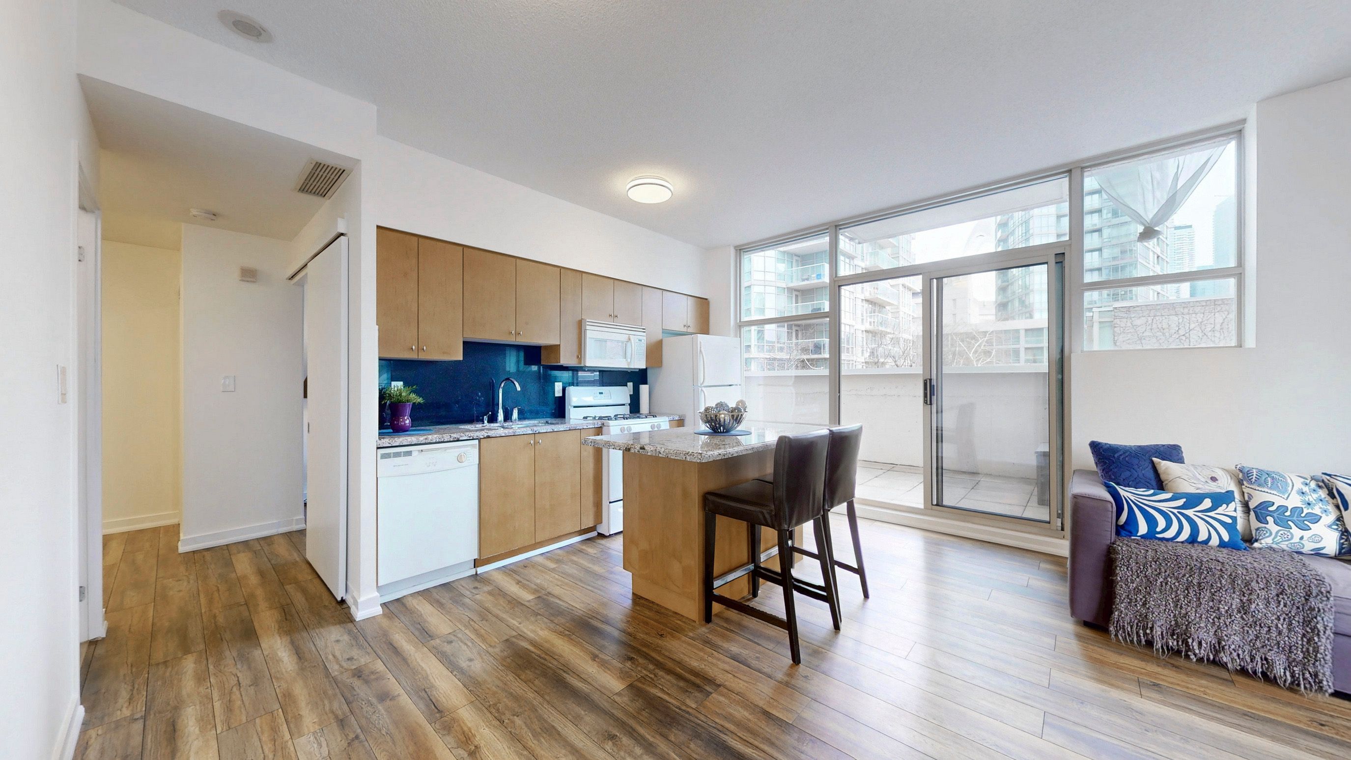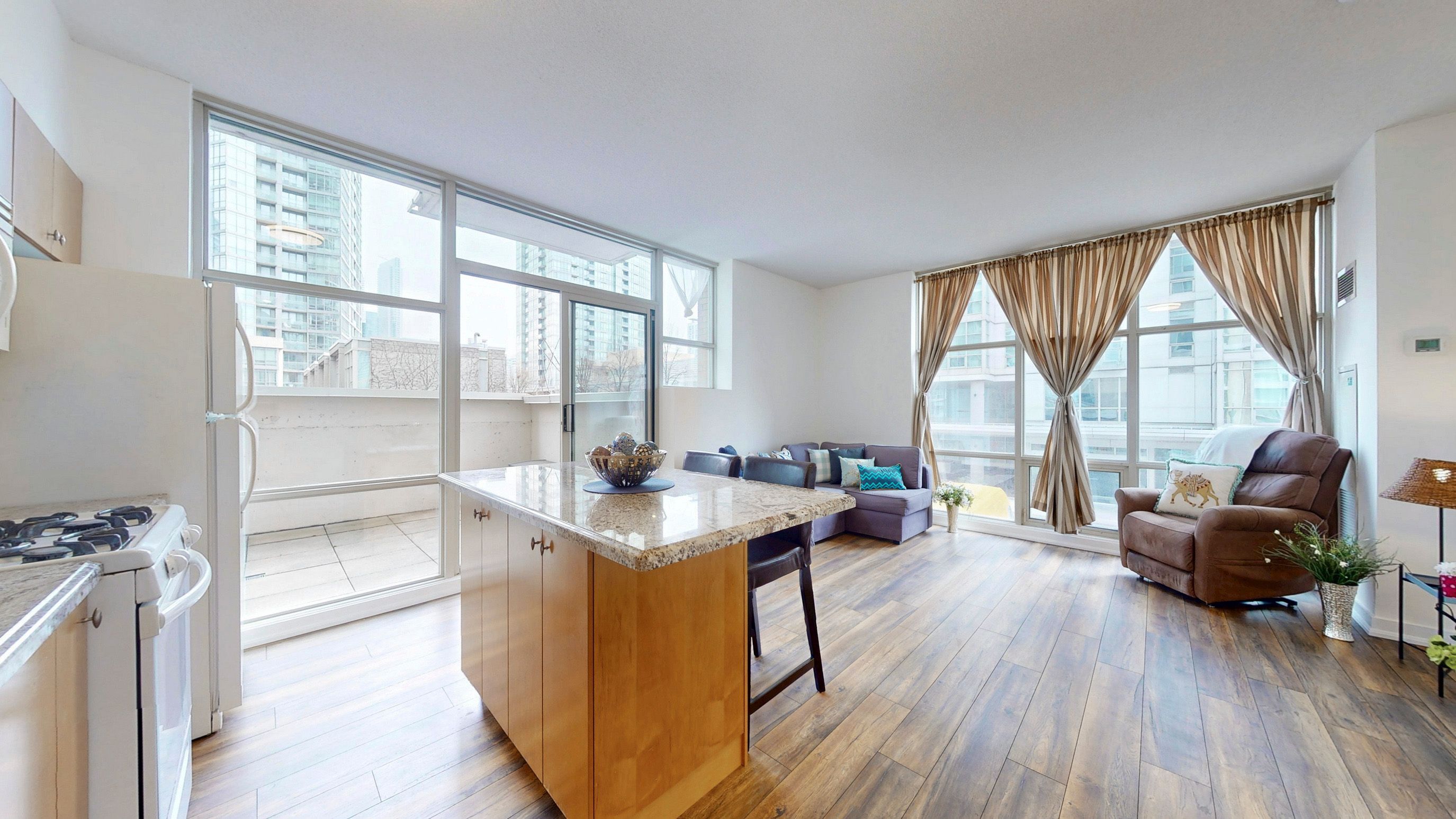 *Welcome To Harbour View Estates In The Heart Of Downtown *Rare Corner Split Bedroom Layout *9Ft Ceilings, Floor To Ceiling Windows, Laminate Flooring Throughout & Freshly Painted *Sought After Walk-Out From Kitchen To Private Sun Filled 200+ SF Terrace *All-Inclusive Maintenance Fees Offers A Fantastic Value For A Unique Boutique Building *Parking Space Is Conveniently Located Close To The Elevator *Enjoy Full Access To 30,000 SqFt City Place SuperClub Featuring A 25-Metre Indoor Pool, Full-Size Basketball, Tennis & Squash Courts, Bowling Lanes, Billiards, Fully Equipped Gym W/Running Track, Private Theatre, Party Rooms and More *Easy Highway Access, But Also Steps Away To TTC *Walk To THE WELL Shops & Restaurants, Coffee Shops, Restaurants, Canoe Landing Park and Community Centre, Supermarkets, Rogers Centre and Scotiabank Arena *Minutes To Fort York Library, Queen West, King West, Financial District, Metro Toronto Convention Centre, and Union Station (VIA Rail/GO Transit/UP Express) *1 Parking & 1 Locker *Don't Miss This Opportunity To Move In And Enjoy