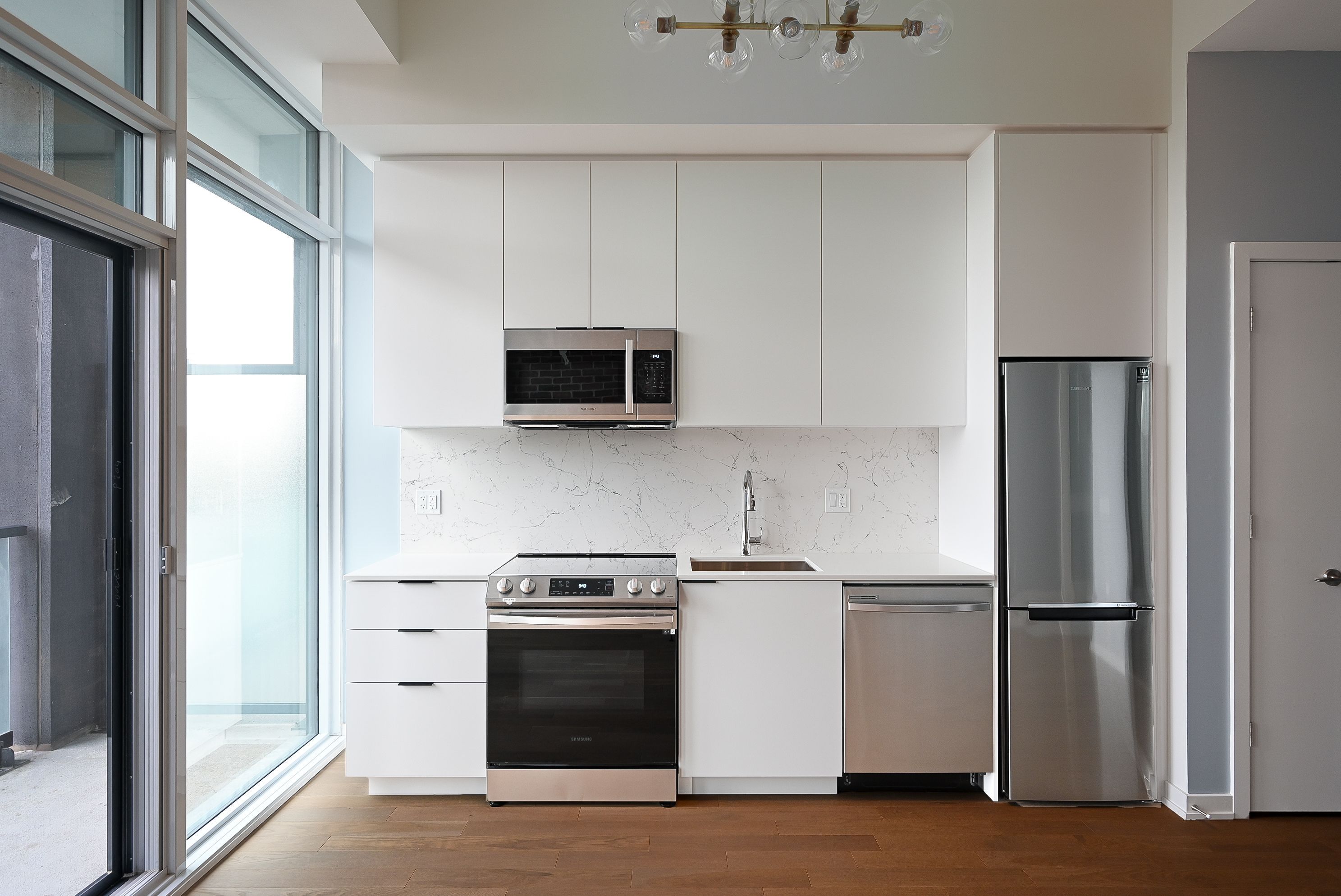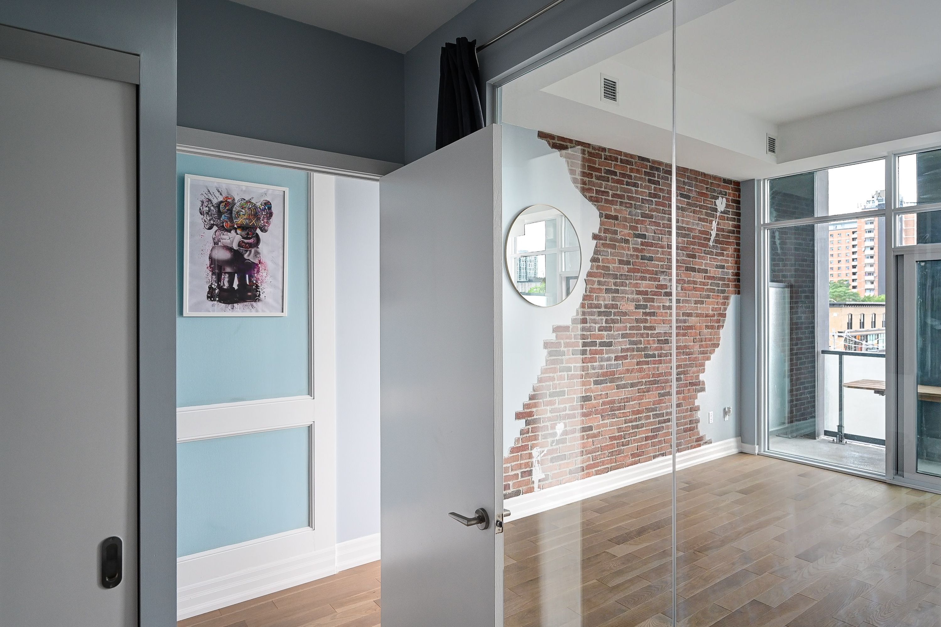 Stylish 1-Bedroom Loft style condo for Lease in Toronto's Vibrant East End Minutes from the Historical Distillery District!Looking for a unique and modern space to call home? This beautifully updated1-bedroom suite is packed with character and charm perfect for urban professionals, creatives, or anyone craving a cool city vibe.Soaring 10'+ ceilings, an exposed brick feature wall, an open-concept layout gives this suite serious loft-style appeal. The sleek kitchen includes tall custom cabinets,quartz countertops, and a matching backsplash ideal for cooking or entertaining.The primary bedroom features a custom-built Murphy bed with a fold-down work desk, offering smart use of space and flexibility.Step outside to your own private balcony for morning coffee or a quiet evening to unwind. Just steps to the Distillery District, TTC transit, dog park, cafes, and shops.Quick access to the Gardiner Expressway and DVP, and only minutes to Leslieville And the iconic St. Lawrence Market. Don't miss this rare opportunity to lease a one-of-a-kind suite in one of Toronto's most dynamic Neighborhoods!